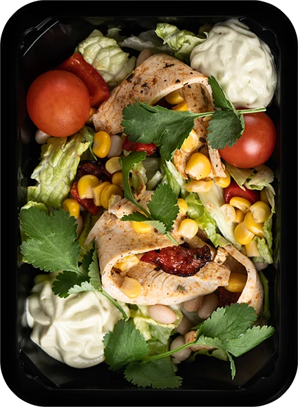 Салат-фахитос с гуакомоле и кукурузой